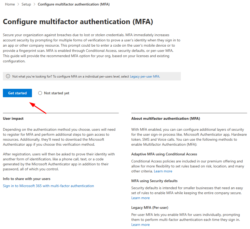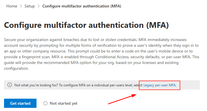 To setup MFA maunally, you will need to select the Legacy per-user MFA: