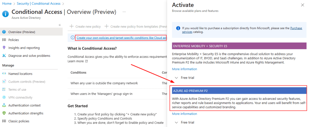 You will find that if you do not have the correct license that that you will get this notification and atvising that Azure PD P2 license is required
