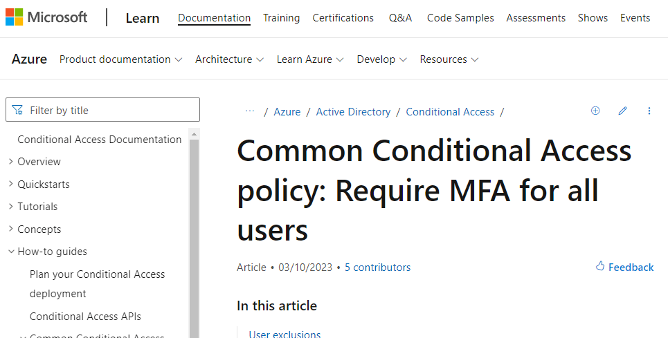 One of these guides is for Multi Factor Authentication (MFA). This guide will setup MFA using Microsoft’s built-in MFA Conditional Access Policy.