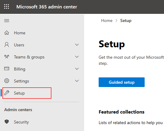 In the Microsoft Admin section, you will find ‘Setup’. This will provide easy to follow guides for common procedures within Microsft 365.