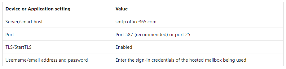There are multiple ways to send emails via SMTP through Microsoft. For a detailed explanation please check Microsoft’s guide here