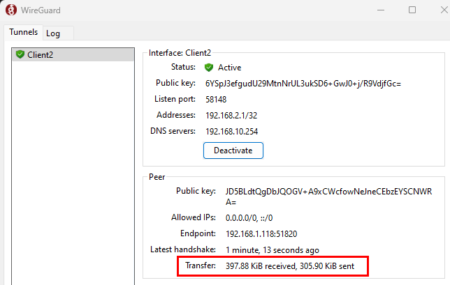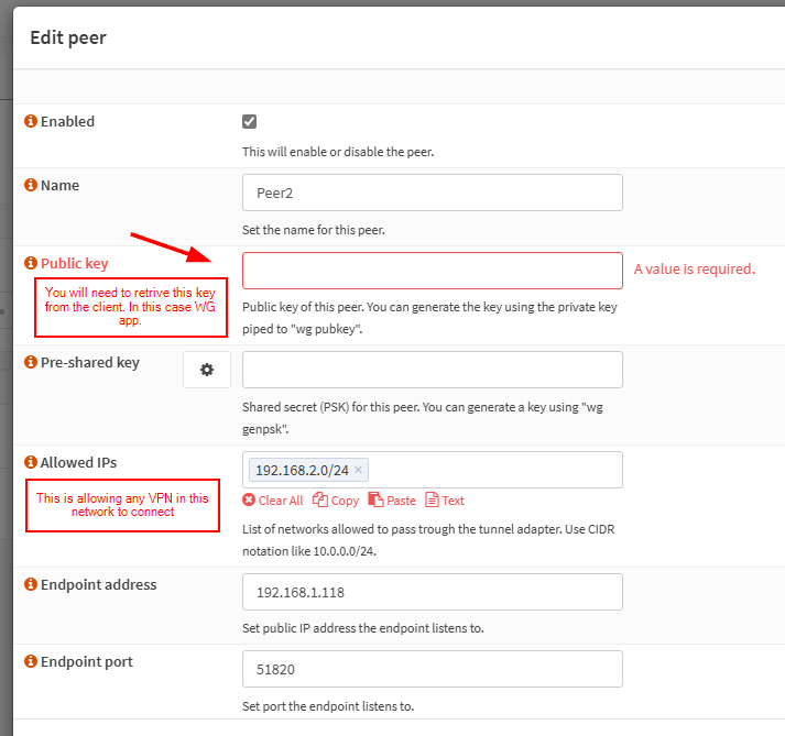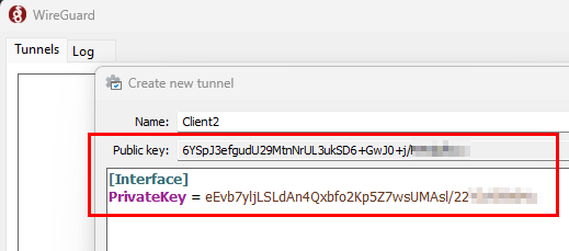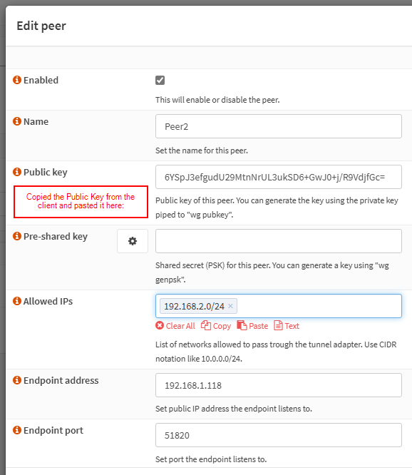 Next we need to setup the Peer. The Public Key will need to retrived from the Client. As I am using a Windows Client, The Public Key is found in the Client App.