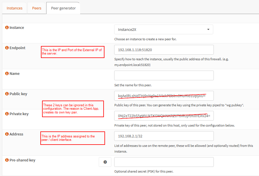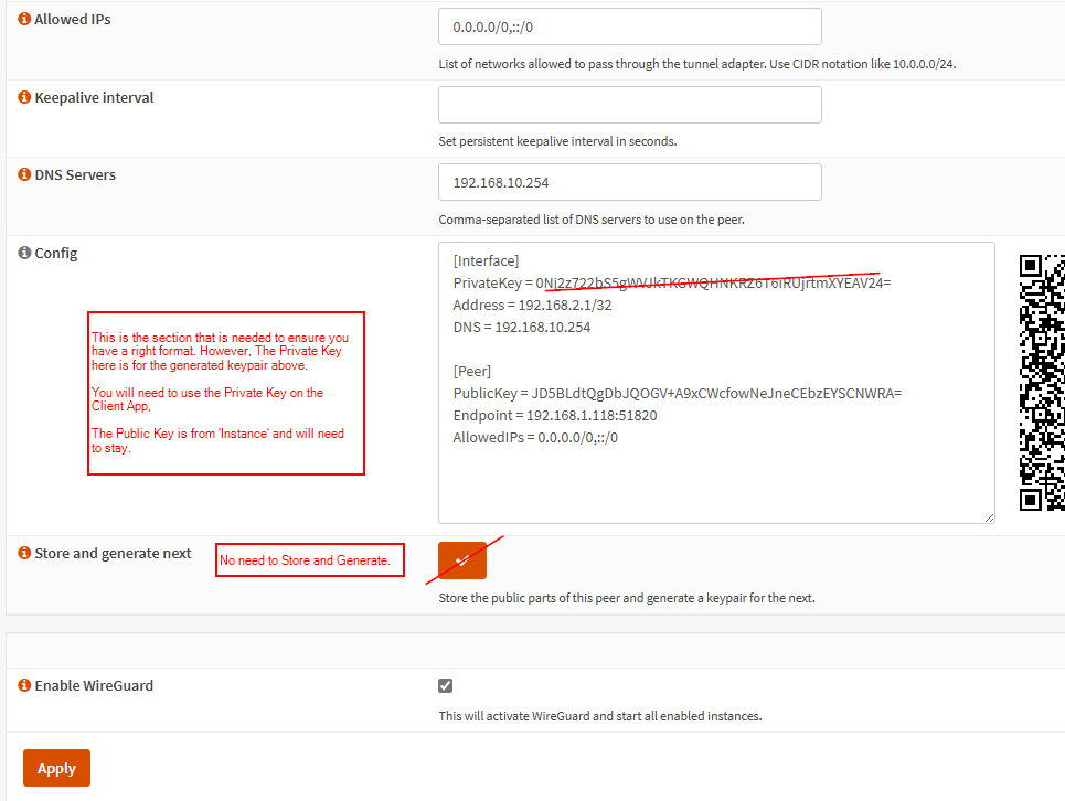 To complete the rest of the Client Config, I use the the Peer Generator to copy the format as this easiest for me.